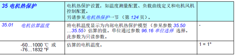有關全部35組電機過溫保護監(jiān)控參數(shù)請參照ACS580固件手冊,這里不再詳述。