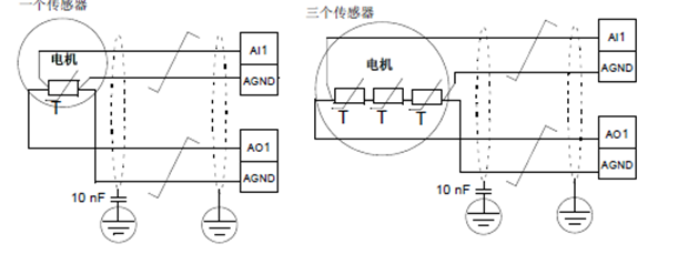 2.通過模擬量輸出端/輸入、電機內(nèi)部溫度傳感器件,檢測電機溫度