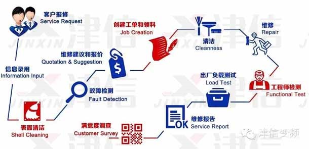 但在這個過程中,返修問題也始終伴隨津信服務(wù)業(yè)務(wù)發(fā)展而一直存在。為了實現(xiàn)對客戶“值得信賴的變頻器專家”承諾,2014年6月開始,上海津信在提高服務(wù)質(zhì)量方面做了大量嘗試。